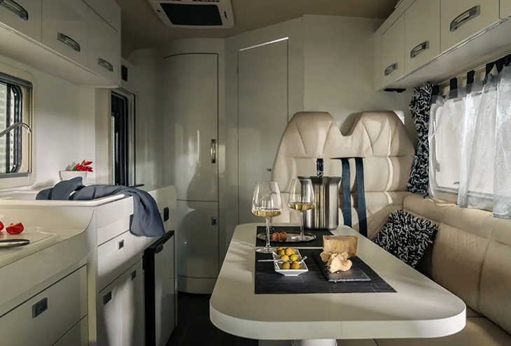 Kortere halfintegralen dan de Wingamm Oasi 540.1 tref je (bijna) niet. Met een lengte van 5,42 meter en een breedte van 2,25 meter is deze Italiaanse camper echt supercompact. Toch hoef je onderweg niks te missen. De Oasi 540.1 is voorzien van een ruim zitgedeelte, een grote keuken, een riant tweepersoonsbed – dat tegen het plafond is weggewerkt – en een complete badkamer. De Wingamm Oasi 540.1 heeft een monocoque opbouw van gfk en staat op de Fiat Ducato met een 140 pk-motor. De vanafprijs is in Duitsland 97.342 euro. Meer weten over deze compacte halfintegraal met een hoog aaibaarheidsgehalte? Lees dan ons eerdere artikel over deze Wingamm.