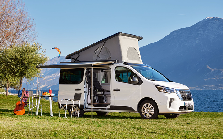 Vooralsnog niet in Nederland te koop, maar wel het noemen waard in een rijtje campers onder de 5,55 meter: de Nissan Seaside by Dethleffs. Deze campingbus heeft een lengte van 5,08 meter en een flexibel interieur met vier slaapplaatsen (waarvan twee in het hefdak) en tot zes slaapplaatsen. Ondanks de geringe afmeting heb je alles aan boord om te leven, slapen en koken. Alleen sanitair ontbreekt. De Nissan Seaside by Dethleffs staat op de Primastar met een 2.0 liter twin-turbo-dieselmotor van 150 pk. In Duitsland staat hij voor zo’n 69.000 euro (in Nederland komt daar nog bpm en btw bij) in de showroom.