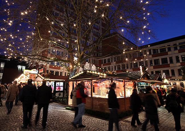 Düsseldorf is voor veel Nederlanders een populaire winkelstad, maar ook rond kerst kom je er aan je trekken. In het hart van de Altstadt vind je een traditionele Duitse kerstmarkt met stands die gebaseerd zijn op de oude burgerhuizen in de stad en bij het stadhuis staan veel kraampjes met handgemaakte producten.