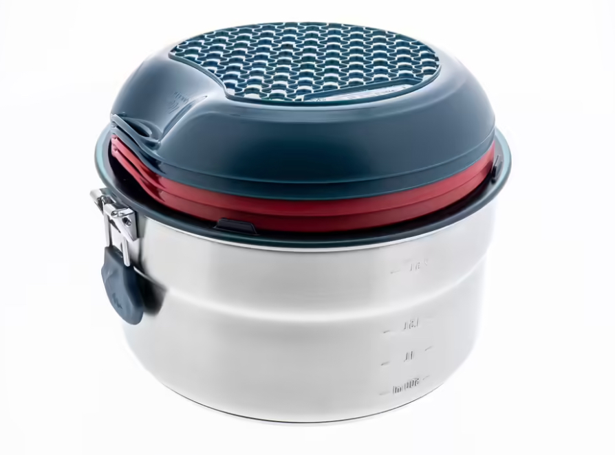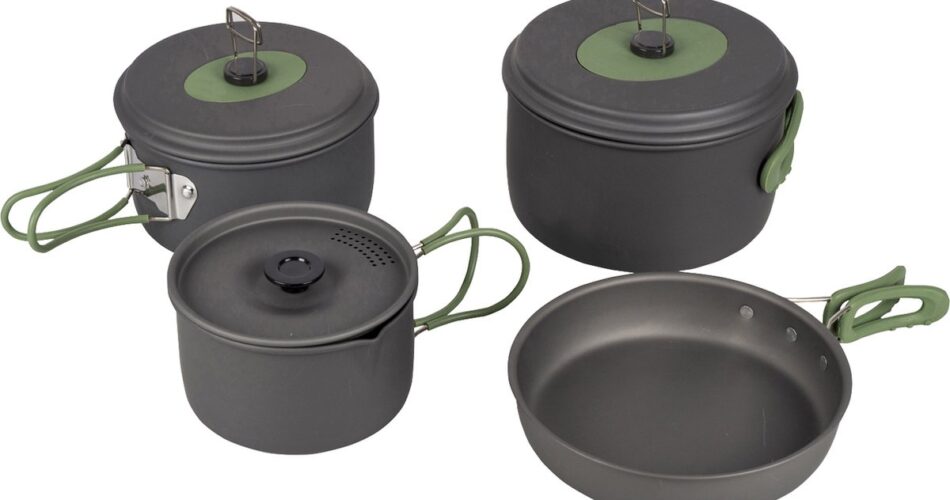 Deze lichtgewicht kookset bestaat uit drie kookpannen met een deksel en een koekenpan. Explorer is dan ook bij uitstek geschikt voor outdoorgebruik. Te gebruiken op verschillende warmtebronnen: gas, keramisch, benzine en elektrisch. Gemaakt van stevig hard geanodiseerd aluminium waardoor de kans op aanbakken aanzienlijk kleiner is. Iedere pan is bovendien voorzien van een hittebestendige siliconen handgreep. Je koopt de pannenset onder meer bij bol.com voor 57,99 euro.