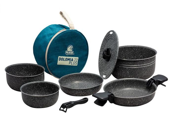 Ga je met de tent, camper of caravan op pad? Dan is de Beaver Dolomia 22 Plus pannenset ideaal om mee te nemen. De pannen kun je in elkaar stapelen, zodat ze weinig ruimte in beslag nemen. Ze zijn gemaakt van aluminium en voorzien van een anti-aanbaklaag. De Beaver Dolomia 22 Plus pannenset koop je bij Obelink voor 59,90 euro.