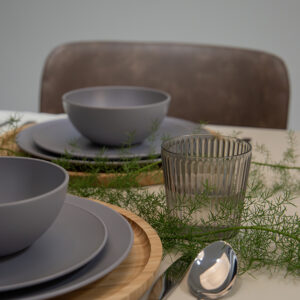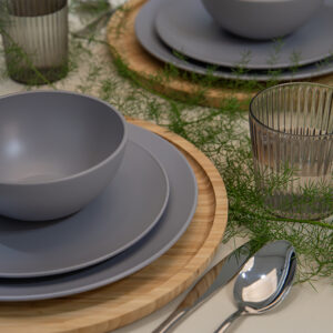 Deze grijze lichtgewicht serviesset bestaat uit vier dinerborden, vier ontbijtborden, vier kommen en vier mokken. Het complete servies is BPA-vrij. Ook handig: alles kan in de vaatwasser en in de magnetron.