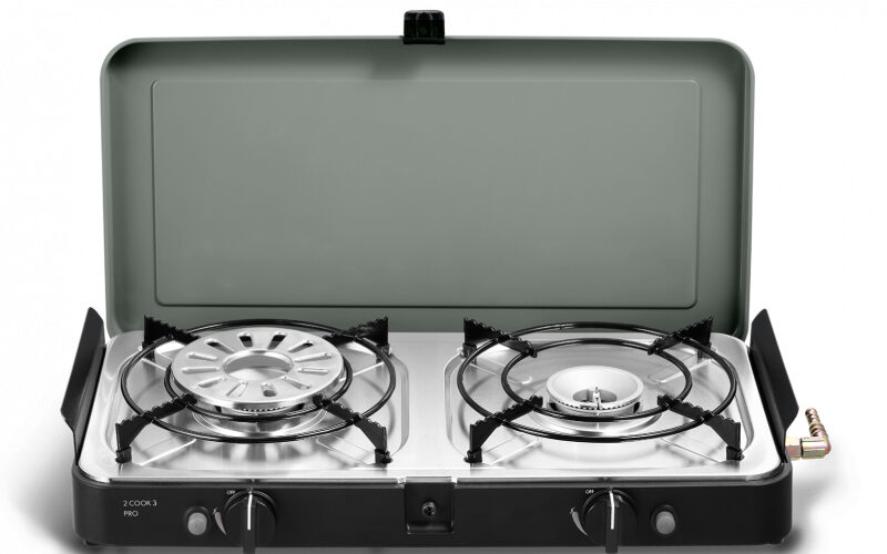 De 2 Cook is een van de bestsellers van CADAC en inmiddels toe aan de derde versie. De 2 Cook 3 is op een aantal punten verbeterd ten opzichte van zijn voorgangers. Zo is het kooktoestel nu voorzien van twee windschermen. Die zorgen er – samen met het deksel dat ook als windscherm dient – voor dat warmte goed onder je pannen blijft, ook als het eens wat harder waait. Verder heeft deze nieuwe versie niet één, maar twee piëzo-ontstekers: een voor iedere kookpit. Ook aan veiligheid is gedacht, want op het kooktoestel zit een gasknopbeveiliging. De gastoevoer gaat alleen open door de knop in te drukken en om te draaien. Zeker met kleine kinderen in de buurt is dat wel zo handig. Door de rubberen antislipvoetjes aan de onderkant staat het toestel extra stabiel.