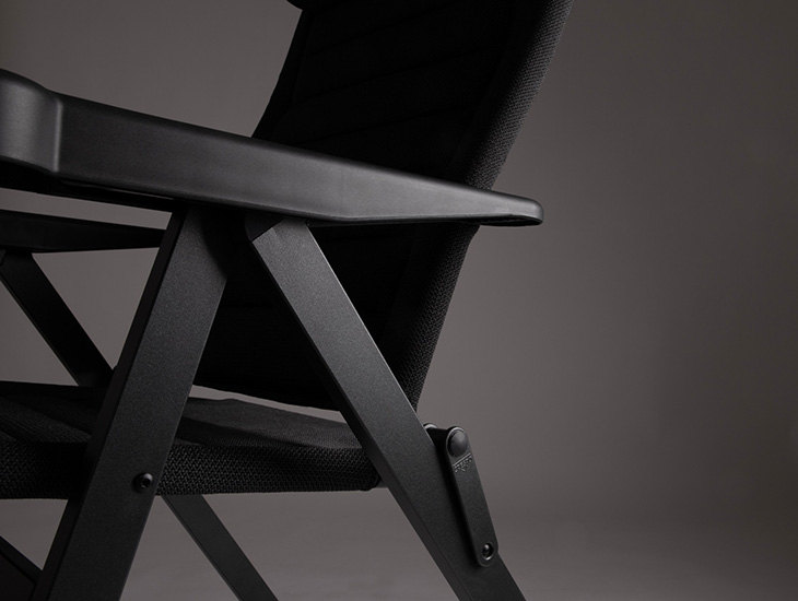 De stoelen hebben een verstelbare rugleuning en zijn in zeven standen te zetten. Wil je éven languit liggen – misschien wel met de ogen dicht, want het is tenslotte vakantie – dan zet je de rugleuning eenvoudig naar achteren. De rugleuning en de armsteunen zijn, net als de hoofdsteun, ergonomisch gevormd. De brede grip aan de voorzijde van de armsteunen geeft extra steun wanneer je uit de stoel opstaat. De lichtgewicht stoelen zijn ook nog eens makkelijk in te klappen en dat is handig als je ze wilt meenemen voor een borreltje bij de campingburen of een dagje naar het strand.