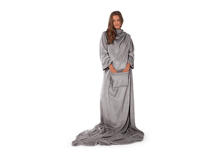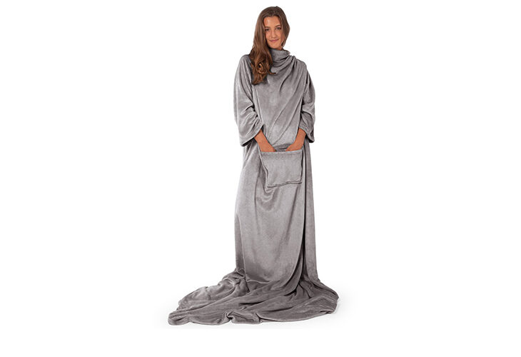 Is de cuddle hoodie van hierboven te kort voor je en heb je liever een fleecedeken die je van top tot teen bedekt? Kies dan dit exemplaar van Blumtal. Deze fleecedeken heeft niet alleen mouwen, maar ook nog eens zakken waar je bijvoorbeeld je telefoon, boek of tablet in kwijt kunt. Als dat niet handig is…
