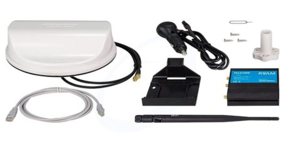 De Maxview Roam is de voordeligste uit onze test én het meest compact. Eigenlijk vind ik de vormfactor van dit apparaat het meest tot mijn verbeelding spreken. Een klein kastje waarin de techniek is verborgen met daarop een wifi-antenne. Via twee korte kabels die aan de antenne zitten kun je het kastje aansluiten op de router. Wil je meer afstand, dan moet je verlengkabels bij bestellen. Dat is overigens wel een nadeel. Connectoren zorgen voor een overgang en dat betekent weerstand en verlies van signaal. Of je dat merkt, is de vraag. De router is een Teltonika RUT 240 met een stukje Maxview-branding.