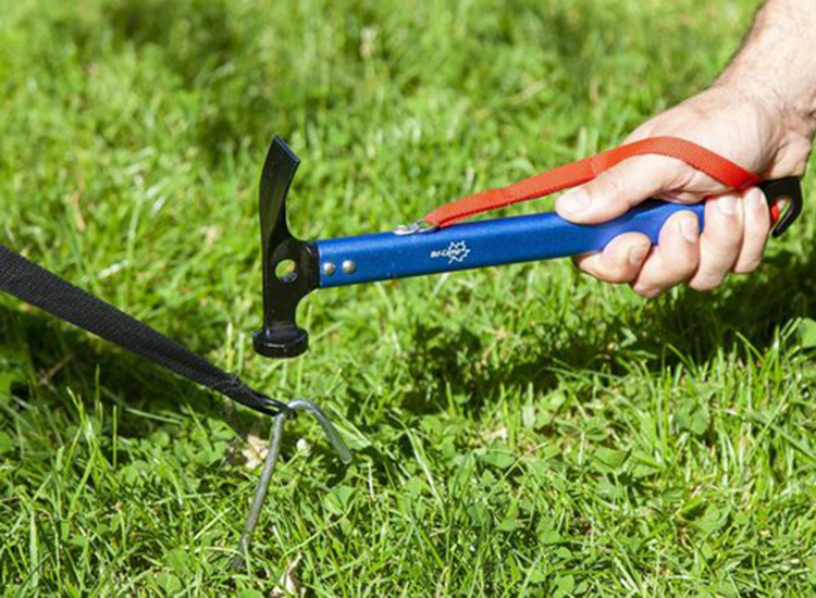 Vergeet ook een hamer niet. Voor metalen haringen en grondpennen volstaat een klauwhamer, maar voor alle andere soorten is een rubberen hamer aan te raden. Een haringtrekker is ook geen overbodige luxe. Deze maakt het loshalen van haringen makkelijker en voorkomt schade.