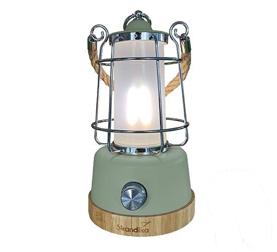 De Skandika Kiruna behoort tot de stijlvolle campinglampen met zijn voet van bamboe en een stoer touw van hennep. Deze buitenlantaarn met led-verlichting heeft een lichtsterkte van 370 lumen. Met de geïntegreerde powerbank kun je apparaten opladen. De Skandika Kiruna-lamp is traploos dimbaar en ook verkrijgbaar in het wit en zwart. Hij kost 49,95 en is onder meer hier verkrijgbaar.