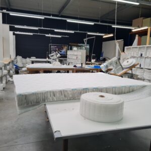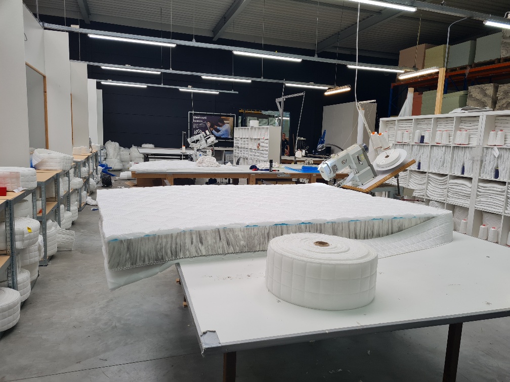 Zodra wij het matras hadden samengesteld, ging in het atelier de productie van start. Ik had er nog steeds een hard hoofd in dat dit maar een uurtje zou duren. Tijdens het wachten konden we het hele maakproces volgen door het panoramaraam. Leuk! Tegelijkertijd gaf het me de mogelijkheid wat meer te weten te komen over Seminautic.