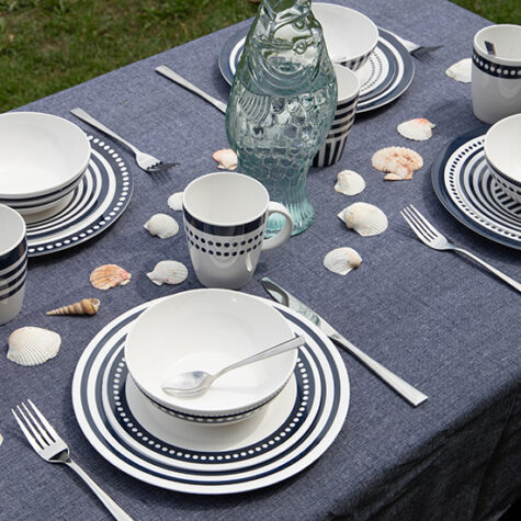 Blauw is sowieso een kleur die veel terugkomt bij Gimex, want ook in de Stone line zien we blauwe borden, bakjes, bekers en glazen. Ga jij voor ‘veilig’ donkerblauw of voor het gedurfdere opaal of azuur? Welke je ook kiest, alle producten in deze Stone line hebben een steenachtige look. Dit maakt ze stoer én stijlvol. En dan is er ook nog de Marine line, waarin de producten zijn uitgerust met een opvallend blauw zeemansdesign.