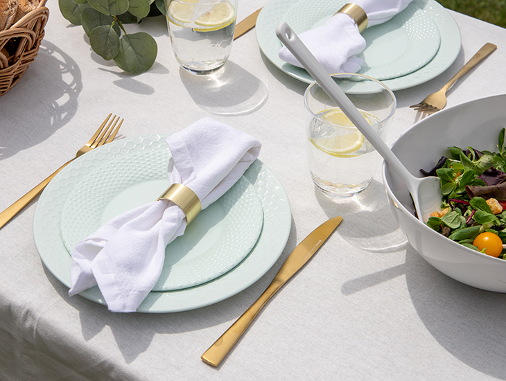 Kleur zien we ook terug in de Gimex Royal line, al betreft het hier subtiele pasteltinten. Het zachtroze, -groen of ivoor, gecombineerd met een reliëfpatroon en ronde afwerking, geeft dit servies een koninklijke uitstraling.