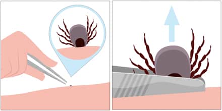 Ja hoor, tijdens je check ontdek je een teek. Wat nu? In paniek raken is niet nodig, maar de teek weghalen wel. Het liefst zo snel mogelijk, want hoe langer hij in je huid zit, des te groter de kans dat hij ziekteverwekkers overdraagt. Pak de teek met een puntig pincet of een speciale tekenverwijderaar zo dicht mogelijk op de huid bij de kop vast en trek hem er rustig uit. Ontsmet hierna het beetwondje. Op de site van het RIVM (Rijksinstituut voor Volksgezondheid en Milieu) staat precies uitgelegd hoe je een teek goed kunt verwijderen.