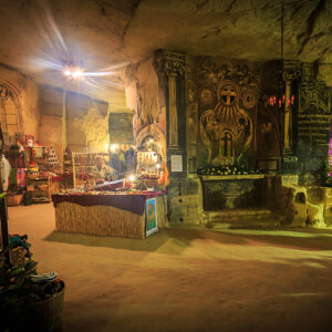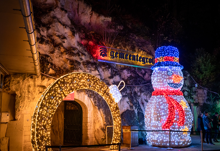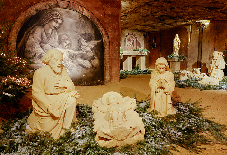 Onder de kasteelruïne loopt een eeuwenoud grottenstelsel van mergel. In december zijn de gangen versierd met lichtjes en kerstbomen, en staan er kerstkraampjes.