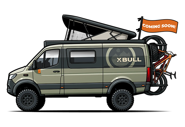 Het begon allemaal met de X740, een 7,36 meter lange camper op de Mercedes Sprinter. De enkele bedden achterin (1,35 x 2,00 meter) bieden twee slaapplaatsen. Meer reizigers? Dan is het mogelijk om voor een verwarmde daktent te kiezen en zo nog twee slaapplaatsen te creëren. Van de zitgroep voorin is ook een relaxte lounge te maken. De XBULL X740 is verkrijgbaar in drie uitrustingen: basis, expeditie en ultimate.