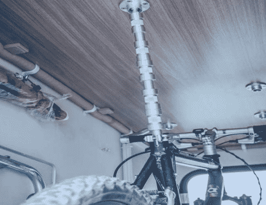 Hij past op elke fiets en in elke campergarage. Gebruik je hem niet, dan is hij simpel op te bergen en neemt hij geen ruimte in. Het idee komt van garagehouder Rob Seeger. Zelf in het bezit van een camper én een fiets. Hij wilde zijn niet goedkope fiets goed, stevig en veilig in de garage van zijn camper kunnen zetten. Hij kon echter geen systeem vinden waar hij helemaal tevreden over was. Maken we het toch gewoon even zelf. De Bike-holder zal menigeen verbazen. Geniaal simpel of simpel geniaal. Je zet er je fiets razendsnel en heel eenvoudig mee vast. De Bike-holder neemt amper ruimte in, weegt niet veel en je garage blijft flexibel te gebruiken. Zo blijven de zijwanden vrij voor zaken als stoelen, de tafel of ander kampeerspul. Gebruik je de Bike-holder niet, dan blijft aan het plafond slechts een houder zitten van zes centimeter doorsnee en twee centimeter hoog. Die zit echt niet in de weg.