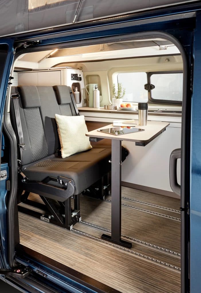 Een Bürstner Copa buscamper is dus geschikt voor dagelijks gebruik en als weekend- of vakantieverblijf. Dankzij het hefdak kun je vier personen een slaapplek bieden. De keuken en koelbox voorzien in de behoefte van de inwendige mens. Door de modulaire rails die in de bodem zijn verwerkt, kun je stoelen plaatsen of ze thuis laten. De bank transformeer je eenvoudig tot tweede bed of zitplaats voor de kinderen tijdens de rit. Natuurlijk kun je de ruimte ook gebruiken om grote spullen te vervoeren.