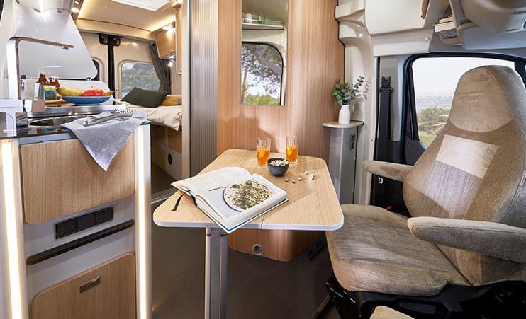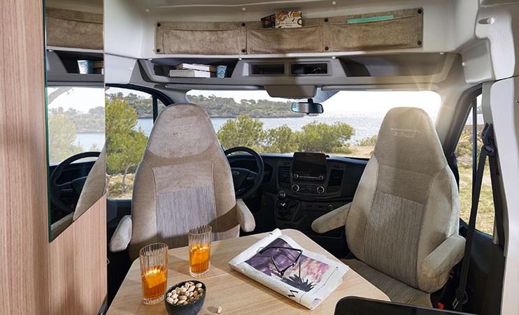 Wie een buscamper met vierwielaandrijving af-fabriek zoekt, heeft niet zo heel veel keus. De Duitse buscamperbouwer Karmann heeft twee modellen die op de Ford Transit 4×4 staan. Beide modellen wijken qua interieur af van de klassieke buscamperindeling. Bij de 560 4×4 zien we achterin een queensbed. De 570 4×4 heeft op die plek twee enkele bedden in lengterichting. Beide modellen zijn erg ruim. Dat komt voornamelijk door het ontbreken van de dinettebank. De zithoek bestaat uit de twee draaibare cabinestoelen en een tafel. Logischerwijs blijft er zo meer ruimte over voor de rest.