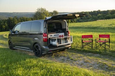 En dan zijn er de uitneembare modules, het modulaire camperinterieur. Deze modules maken van je personenauto of bedrijfsbusje binnen een handomdraai een minicamper. Met slimme oplossingen als uitschuifbare keukens en een bank die ook buiten is te gebruiken. Of een voortent die de beschikbare ruimte twee keer zo groot laat worden. Zo heeft het Duitse Irmscher nu een complete ombouw voor de Opel Zafira Life en Vivaro. Je koopt de complete camper of – als je zelf voor de bus zorgt – alleen de inrichting. Die heet IS1, van Irmscher Sportindividualisierung. Irmscher heeft een naam als tuner van sportieve Opels. Je hebt dan alles bij de hand. Volgens de fabrikant ben je in 10 minuten klaar met in- of uitbouwen.