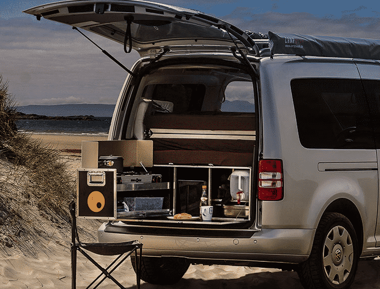 Zo heeft het bedrijf Outbase Campervans drie modules – een slaapbank, een kast en een keuken – die passen in de hierboven genoemde modellen (foto boven artikel). Je neemt ze alledrie, of alleen het bed. Net wat je wilt en wat binnen je budget past. Vervolgens kun je hem verder uitrusten met bijvoorbeeld een koelbox of een huishoudaccu. Er is veel mogelijk. Kijk maar eens rond op de site van Outbase Campervans.