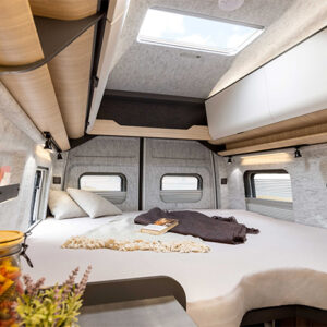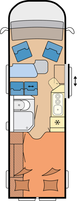 Achterin twee bedden met een lengte van 2 meter. Hier is ook een groot ligoppervlak van te maken. De bedden hebben een opklapbare Goodside-lattenbodem en koudschuimmatrassen. Een derde, kleiner, bed is optioneel.