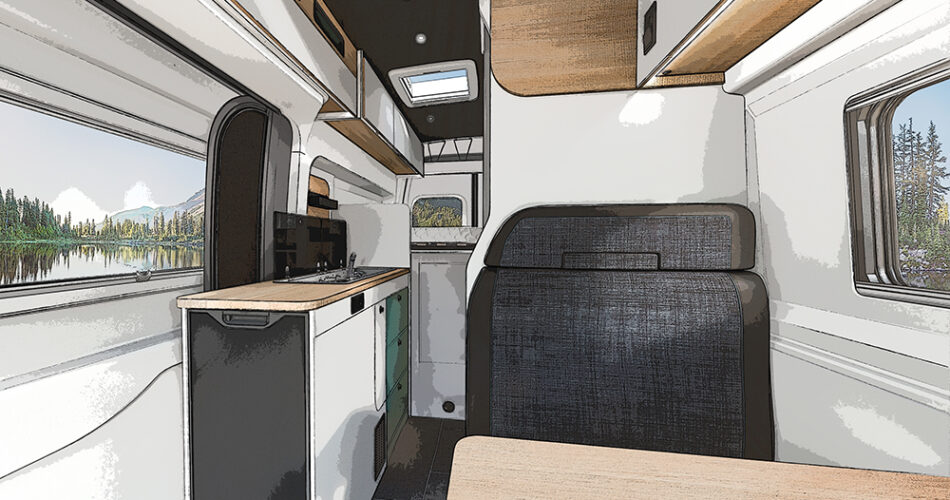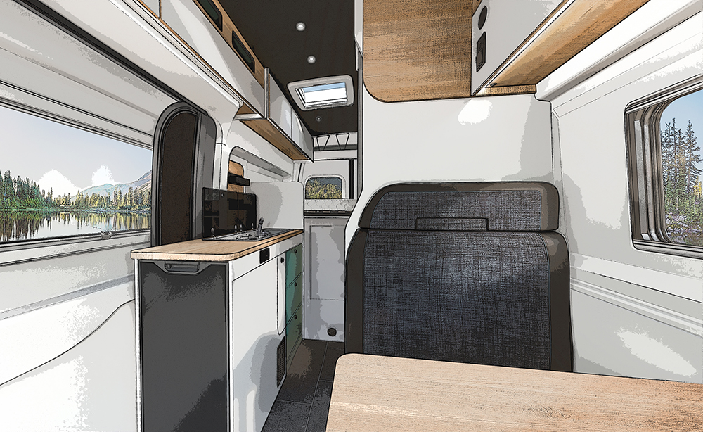 Het exterieur van de Pilote Atlas A603 G is stoer en sportief, met zwarte 16 inch velgen. De grote Ford-letters in de grille laten er geen misverstand over bestaan wat het basisvoertuig van deze buscamper is. De Atlas A603 G is 6 meter lang en 2,65 meter hoog. Over het interieur laat Pilote nog niet veel los. Onderstaande schets toont een klassieke buscamperindeling met achterin een dwarsbed. Pilote verklapt al wel dat de Atlas-buscamper een grote garage heeft. Tot de standaarduitrusting behoren onder meer een dieselkachel en zonnepanelen, zodat kampeerders ook echt meerdere dagen onafhankelijk kunnen reizen.