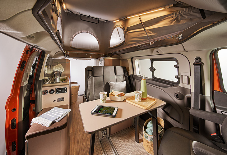 De Bürstner Copa onderscheidt zich van normale personenauto’s door zijn camperinrichting, die het mogelijk maakt om er op elk moment op uit te trekken. Naast een tafel, bank en/of stoelen heeft de Copa namelijk ook een opbergkast voor kleding of andere benodigdheden. De keuken is uitgerust met onder meer een tweepitskookstel met geïntegreerde spoelbak, beiden met een deelbare glazen afdekplaat, en een 41 liter-compressorkoelbox. Slapen gebeurt bij de C 500 standaard in het pop-up dak, dat is voorzien van een tweepersoonsbed met een afmeting van 1,90 x 1,10 meter. De raamopeningen – met een insectenhor – maken het mogelijk om vanaf het bed van het uitzicht rondom de camper te genieten. In de Copa C 530 kan het slaaphefdak aan de achterzijde open waardoor buiten nog meer naar binnen komt.