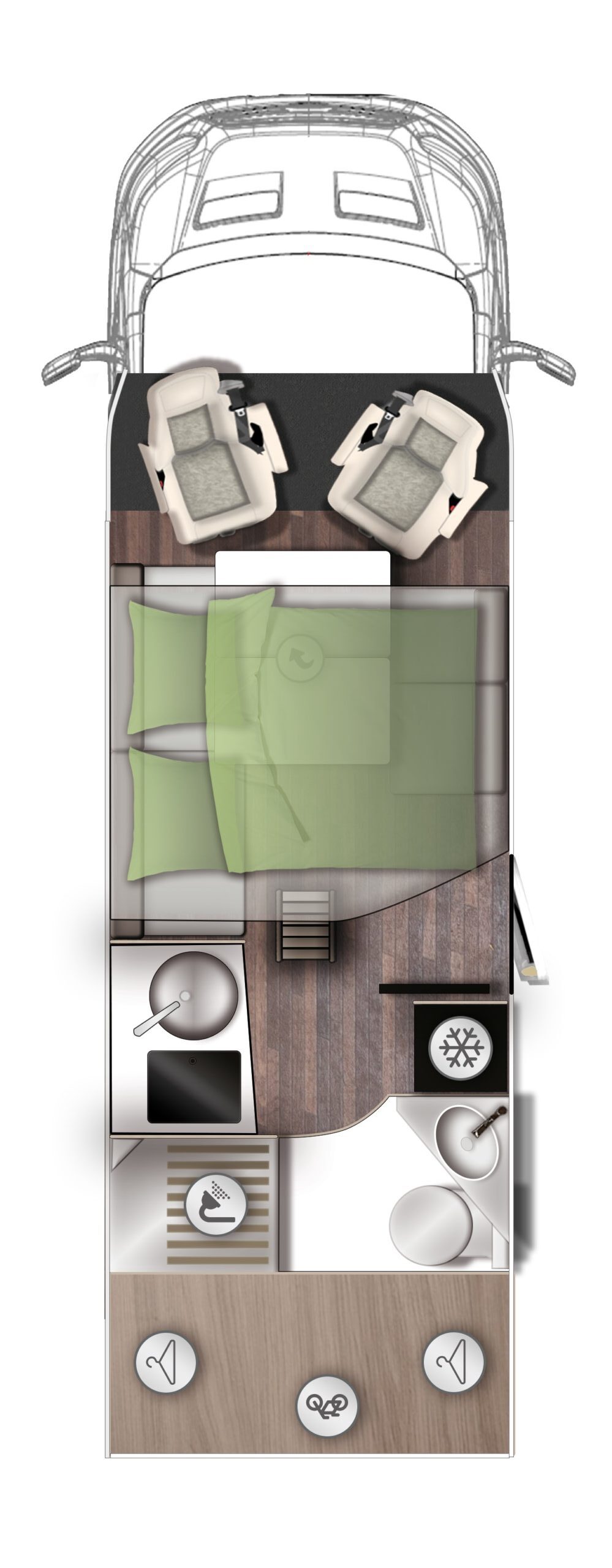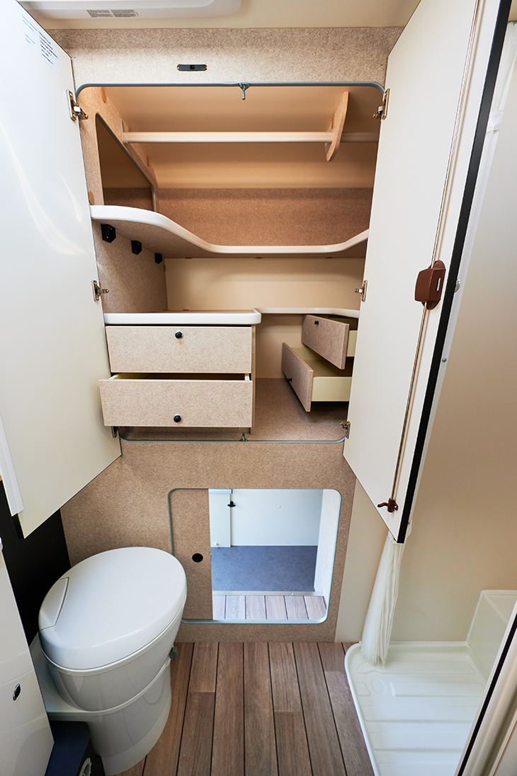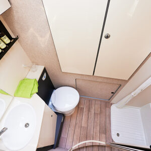Vooral de TC 639 LF valt op. De ruime badkamer is in z’n geheel af te sluiten van het woongedeelte. En de badkamer biedt direct toegang tot de kledingkast, wat dit meteen tot een perfecte kleedruimte maakt.