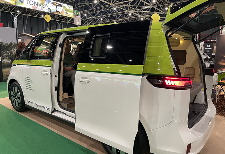 De compacte campers van Outbase zijn bedoeld voor weekendjes weg en reizen én voor dagelijks gebruik. Het Utrechtse bedrijf vindt duurzaamheid erg belangrijk. De materialen in de camper zijn gerecycled of afkomstig van hernieuwbare bronnen. Bij een duurzaam bedrijf hoort een dito wagenpark en daarom wil Outbase in de toekomst alleen nog hybride en elektrische campers op de markt brengen. Een daarvan is de Outbase ID. Buzz op de gelijknamige Volkswagen. Deze kampeerauto heeft een bank met twee gordels, draaibare cabinestoelen en een uitschuifbare tafel. Van de bank is in enkele seconden een bed van 2 x 1,25/1,30 meter te maken. Het eigen ontwikkelde slaaphefdak biedt nog een bed van 1,90 x 1,10 meter met 1,20 meter vrije ruimte. Koken kan binnen of buiten met het draaibare keukenblok, dat is voorzien van een spoelbak en een inductiekookplaat. Opbergmogelijkheden zijn door de hele camper te vinden.