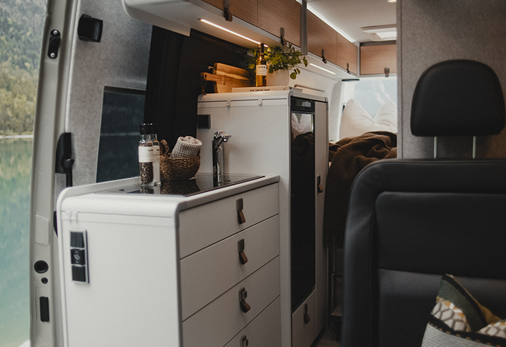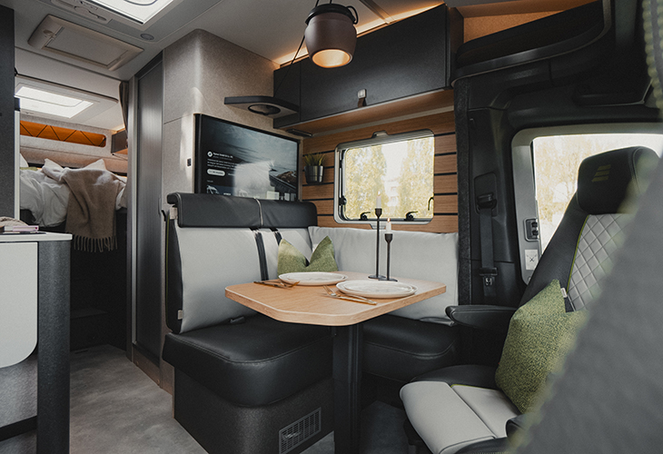 Ook hier een pakket om zelfvoorzienend te reizen. Daarin zit onder meer een standaard ingebouwd systeem met 4×80 Ah lithiumaccu’s en een 95W-zonnepaneel, waarvan optioneel nog een tweede is aan te schaffen. Verder heeft deze CrossOver-buscamper een omvormer met een continu vermogen van 1.300 W, een verswaterfilter, een 90 liter-compressorkoelkast, een 6 kW dieselkachel en een tweede toiletcassette. De vanafprijs van de Grand Canyon S CrossOver is 162.440 euro.