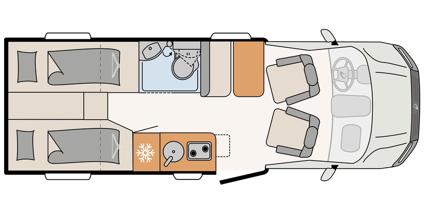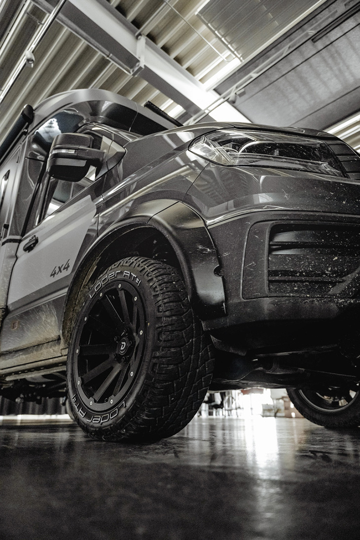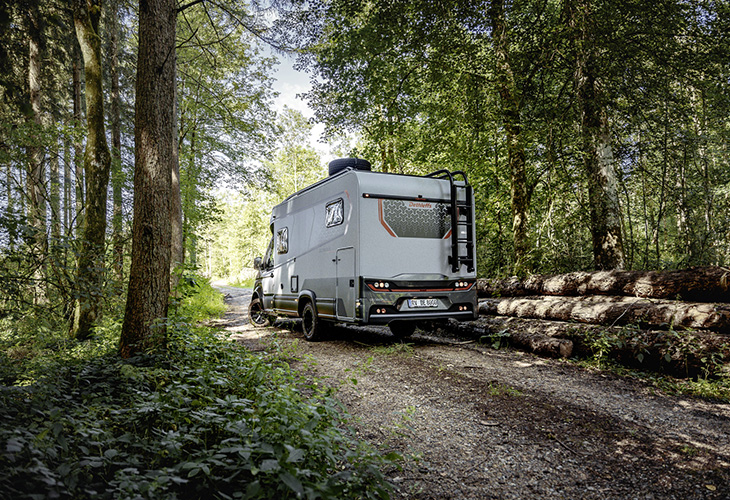 Dethleffs kiest de Volkswagen Crafter als basisvoertuig voor deze avonturier met vierwielaandrijving. In de standaarduitvoering is hij lekker robuust en rijk uitgerust, met een 163 pk-motor, achttrapsautomaat, 18 inch terreinbanden, een differentieelslot (handig bij oneffen ondergrond), een liftkit voor de ophanging, een luchtgeveerde achteras en een tot 2.100 kilogram versterkte vooras die de impact van ruwe paden kan opvangen. Allemaal zaken waarmee je met deze camper – die 6,85 meter lang en 2,20 meter breed is – prima offroad kunt rijden.