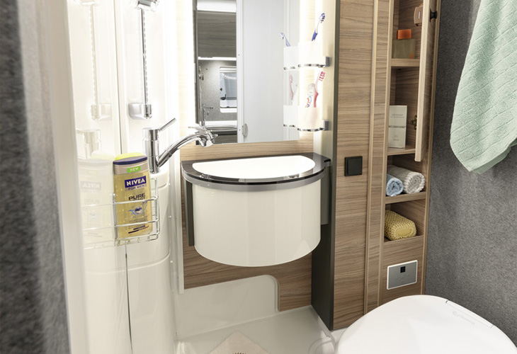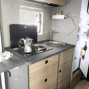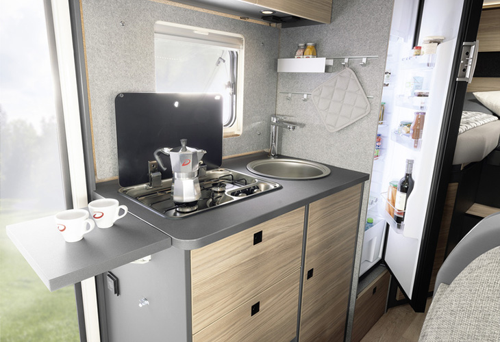 In de Globebus Performance 4×4 kiest Dethleffs voor een keuken met een 131 liter-compressorkoelkast, een ronde spoelbak en een tweepitskookstel waarvoor onderin de keuken een gasfles van 2,8 kg staat. In de badkamer is het dankzij de draaibare wastafelwand het mogelijk om in de camper uitgebreid te douchen. Ook in de badkamer: een Clesana C1-droogtoilet. Achterin de geliefde enkele bedden in lengterichting, met daaronder kasten voor kleding en andere zaken.
