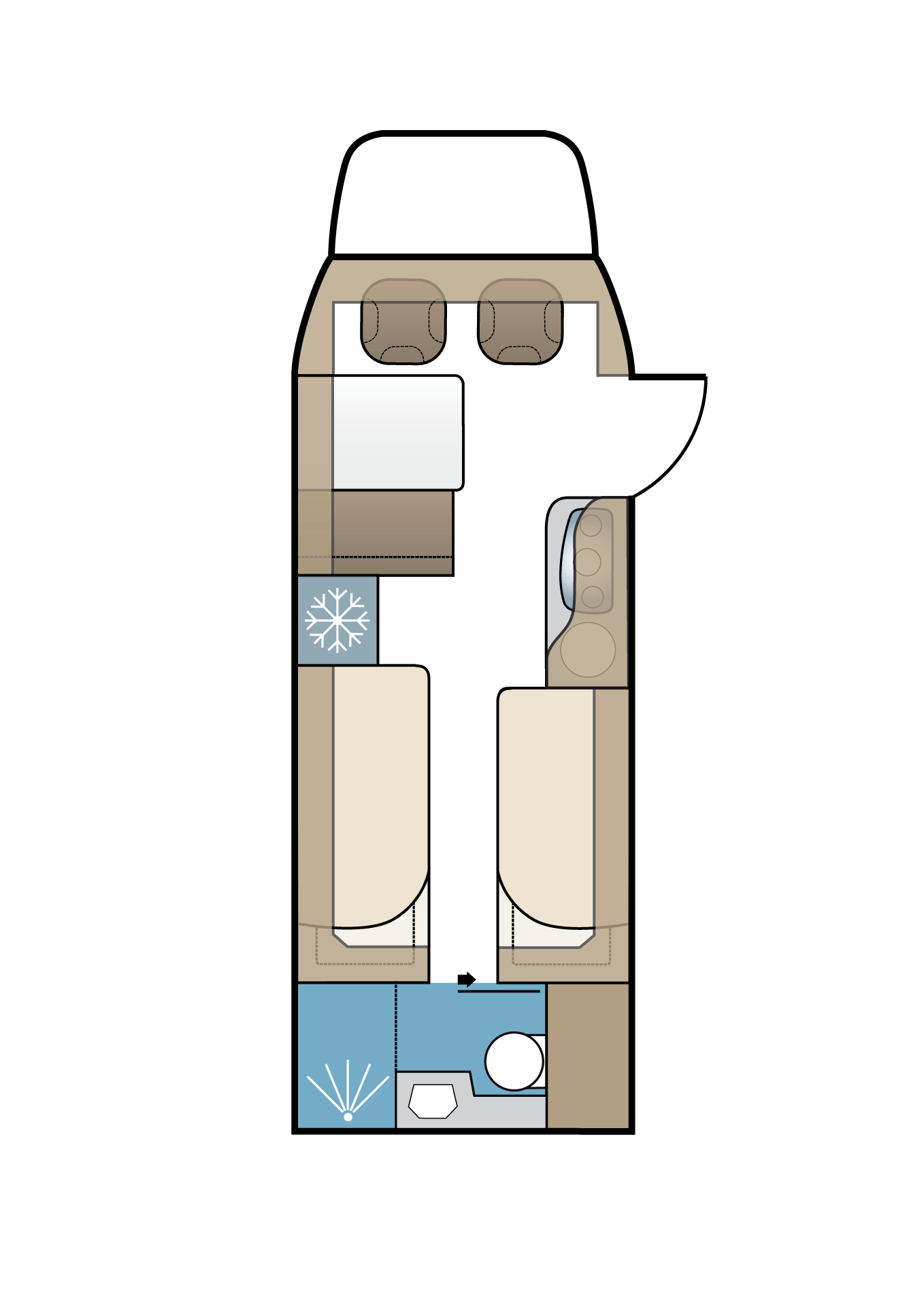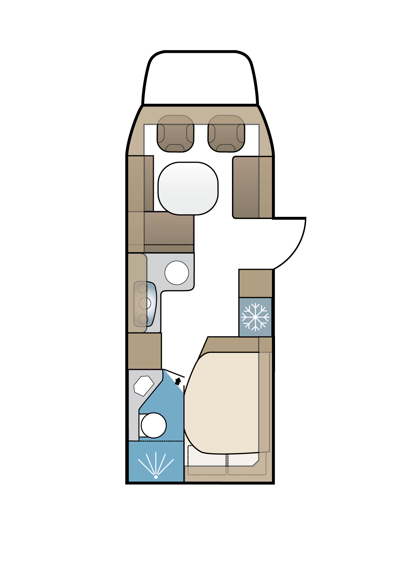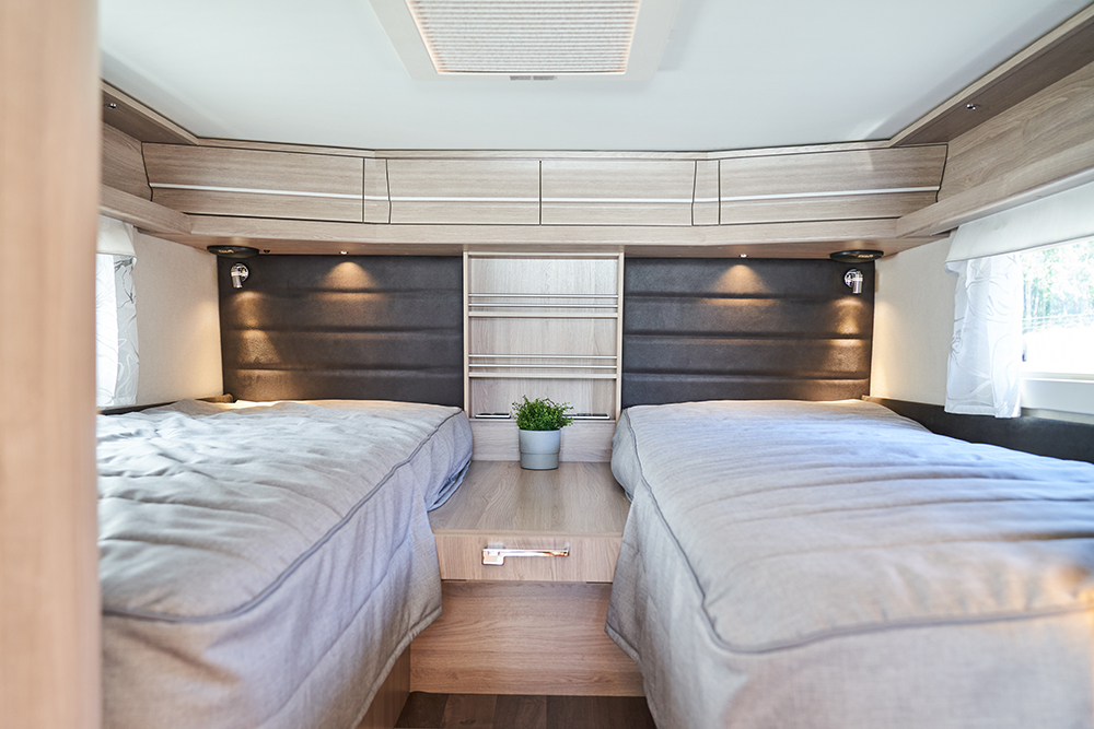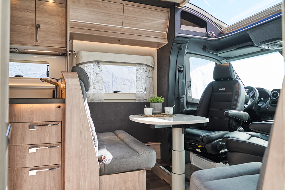 Liever een zwaardere camper en meer laadvermogen? Daarvoor biedt Kabe de Novum met een totaalgewicht van 4500 kilo, een rijklaargewicht van 3250 kilo en een laadvermogen van 1250 kilo. In dat geval is een C-rijbewijs vereist. De Heavy-uitvoering is daarnaast nog meer aangekleed met een 95 liter-brandstoftank (in de Light-uitvoering is dat 65 liter), brandstofverwarming, een AGM 130Ah-accu (i.p.v. 100Ah in de Light), een bank met armsteunen en een slide-out-functie, een ingebouwde oven, een opdekmatras van 6 centimeter (de Light heeft 3 centimeter) en een warmtewisselaar. Een elektrisch hefbed en een vijfde goedgekeurde zitplaats zijn optioneel.