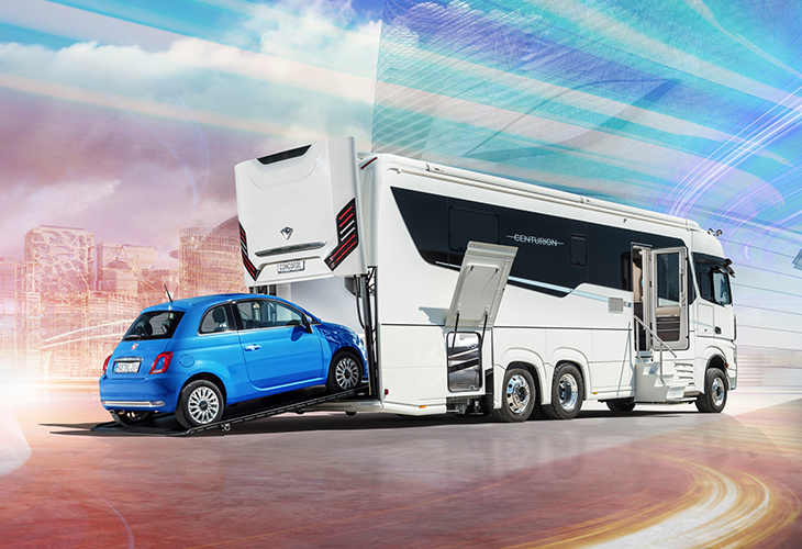 Het vlaggenschip van Concorde is de Centurion, een enorme drieassige krachtpatser op de Mercedes Actros. In deze serie is er nu een nieuw model: de Centurion 1200 GSI. In de 12 meter-campers van Concorde is dit de eerste volledige integraal. In de 1200 GSI ook de GigaSpace-cabine van Mercedes Actros. Deze grootste Actros-cabine biedt maar liefst 2,13 meter stahoogte tussen de stoelen en is uitgerust met allerlei opbergmogelijkheden. Het nieuwe ontwerp van de Centurion 1200 GSI maakt een grotere autogarage mogelijk. Hierdoor kan bijvoorbeeld een Mini, een Fiat 500 of een andere auto tot 3,85 meter lengte mee op reis.