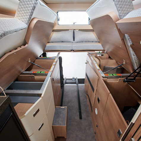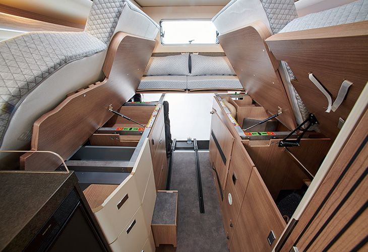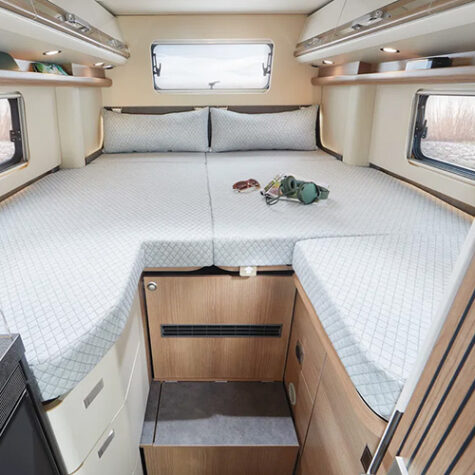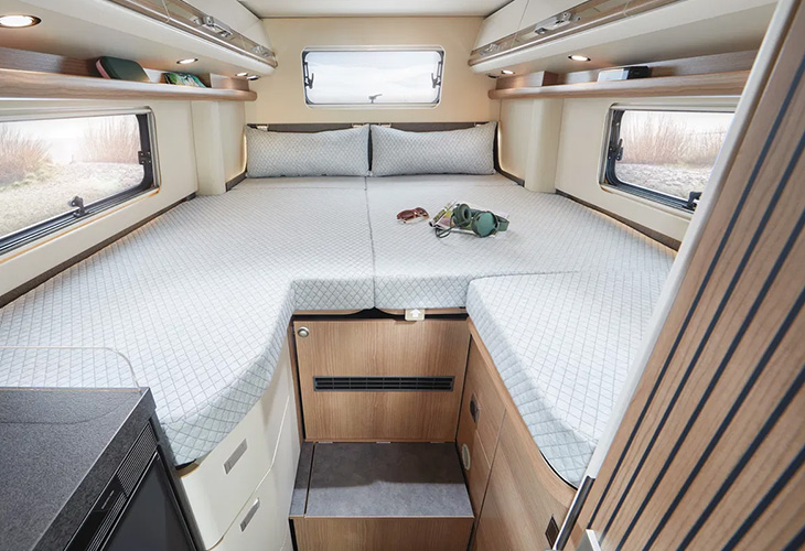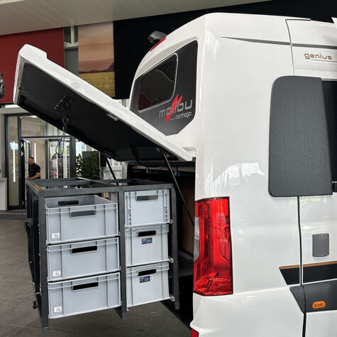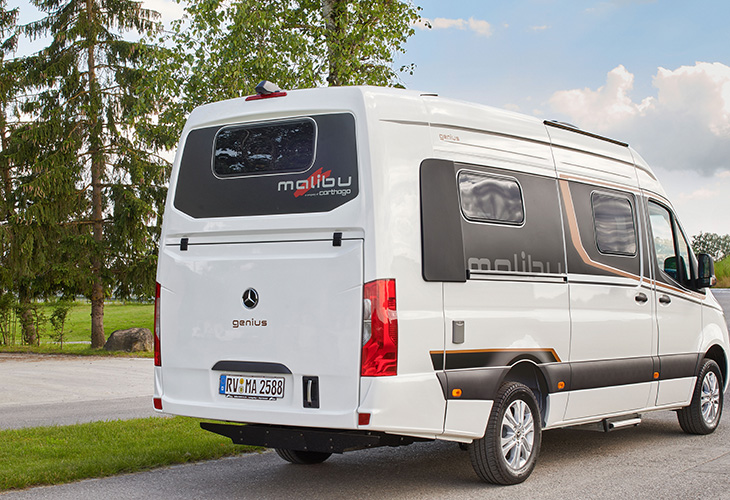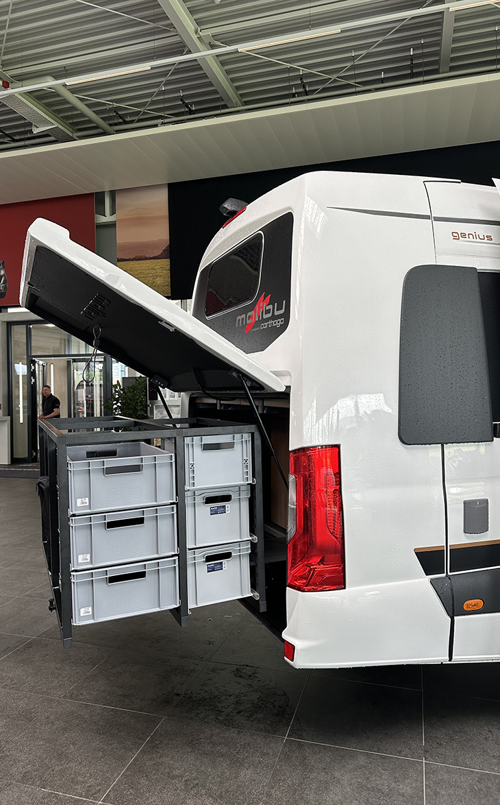 Voor de Malibu Genius 641 LE gebruikt het merk het eigen two rooms-concept. Door de badkamerdeur helemaal open te zetten, dient deze als scheidingswand tussen de keuken en zithoek, en de badkamer en het bed. Een extra element kan vanaf de deur over het keukenblad draaien, zodat de badkamer en het bed compleet van het leefgedeelte zijn afgesloten. Het two rooms-concept is ook te vinden in de Malibu First Class.