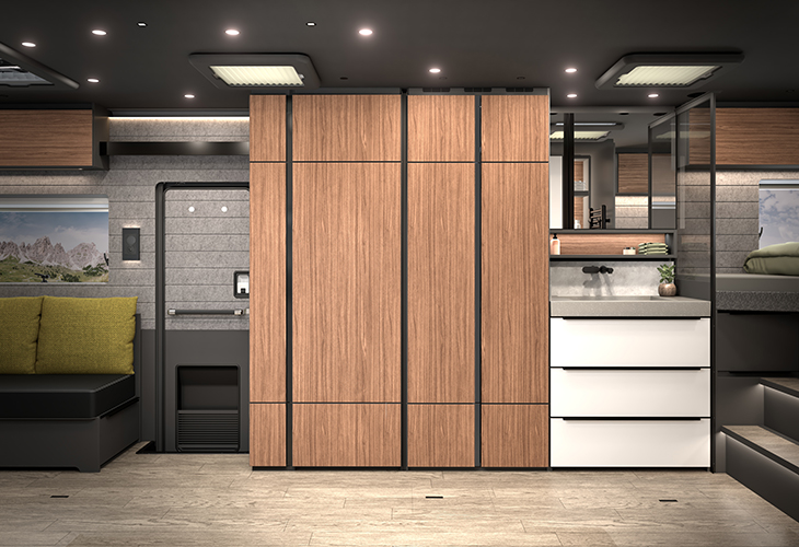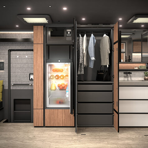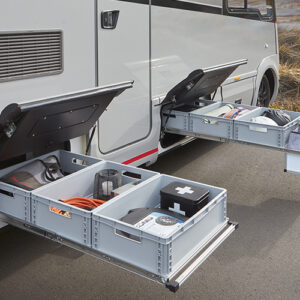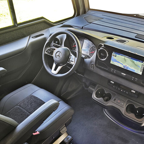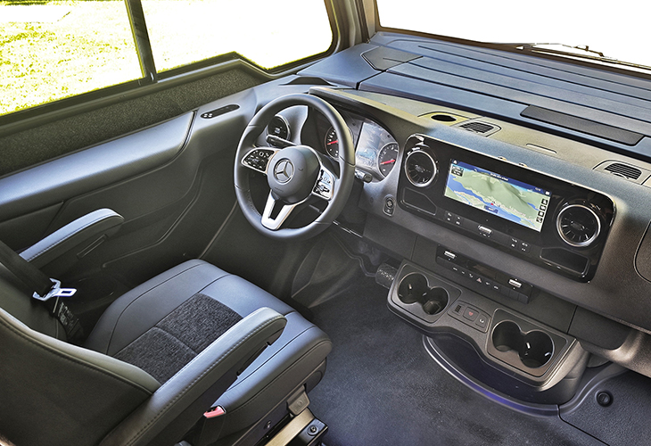 Helemaal nieuw in de cabine is het digitale paneel aan de bestuurderszijde. Hiermee is het bijvoorbeeld mogelijk om de watertanks te legen, de instaptrede inklappen en de binnenverlichting bedienen. Op het dashboard vallen de houders voor een iPad – mét usb-aansluiting – op, zowel aan de kant van de bestuurder als bij de passagier.
