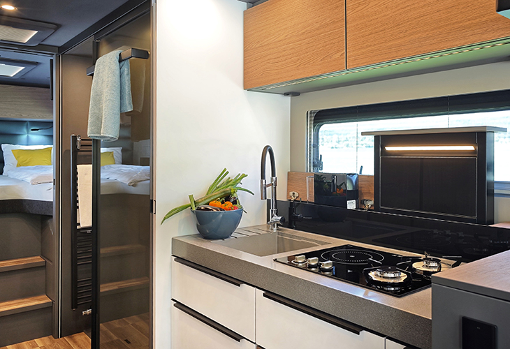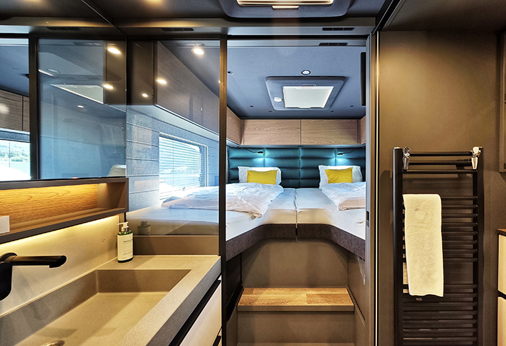 De eerste liner op Mercedes Sprinter, zo noemt Niesmann+Bischoff de Arto. Het is een opvallende keuze van het Duitse merk, dat eerder de Fiat Ducato als basisvoertuig koos. Nu is er dan dus de Sprinter, die uiteraard is voorzien van alle assistentiesystemen van Meredes. Met onder meer rijstrookassistent – die waarschuwt wanneer de camper de rijkstrookmarkering raakt –, verkeersborddetectie en vermoeidheidsherkenning krijgt de nieuwe Arto een flinke veiligheidsupgrade.