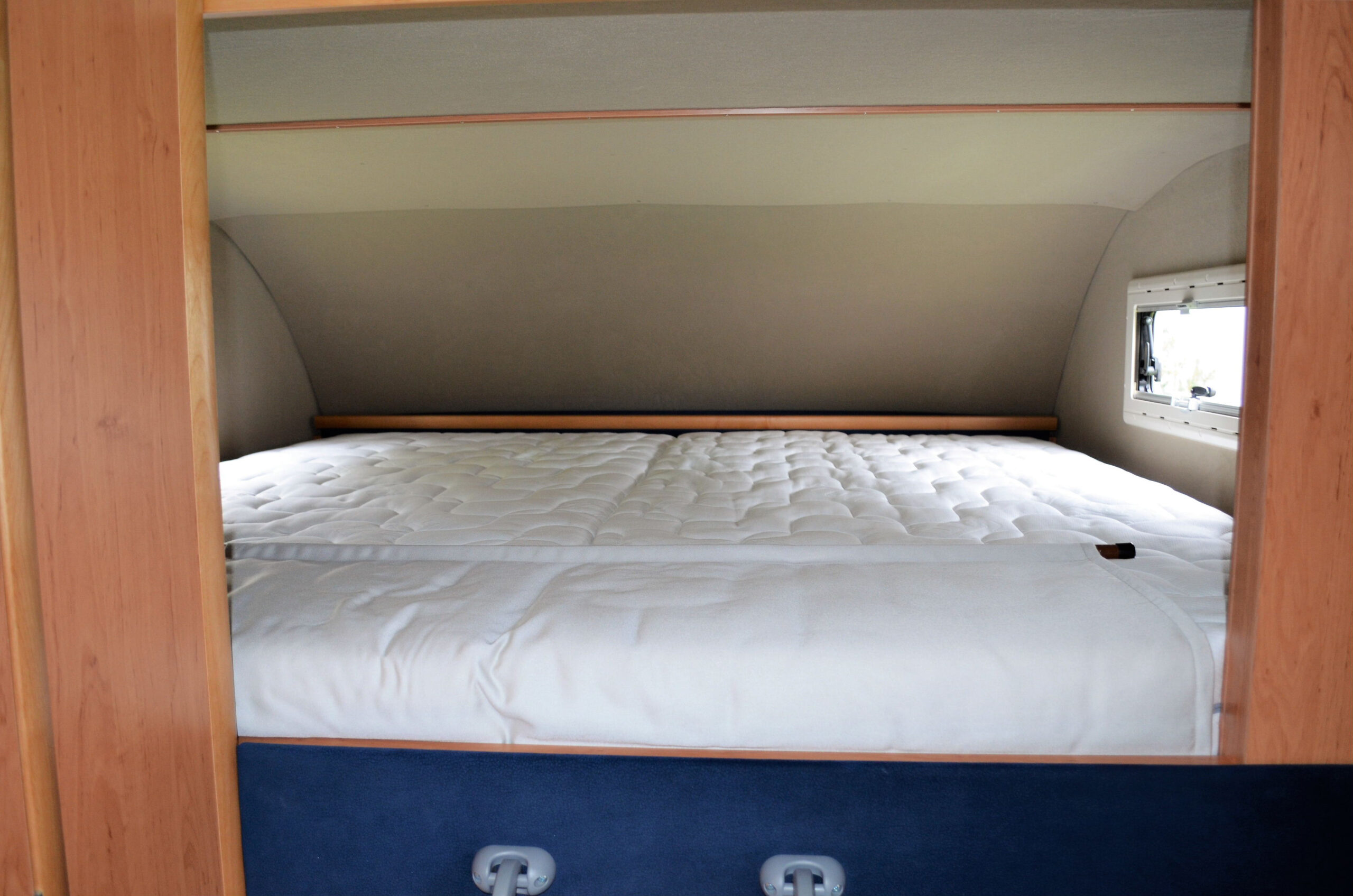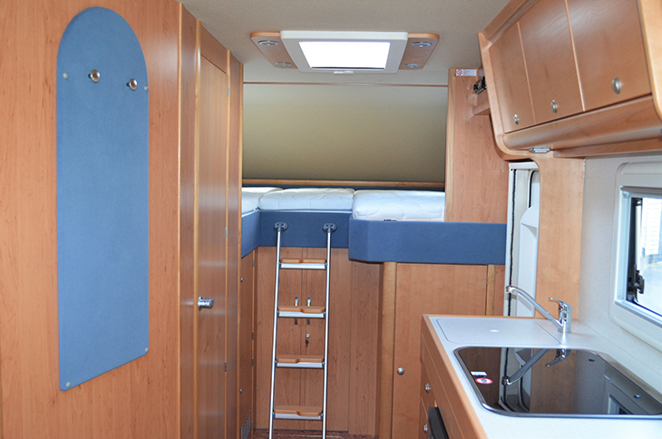 In de alkoof twee bedden van 1,95 meter lang en 80 centimeter breed met een 120 mm dik koudschuimmatras. Een led-spot zorgt hier voor verlichting. De verwarming in de alkoof is traploos instelbaar. De ramen aan weerszijden kunnen open. Het woongedeelte is met een gordijn af te sluiten van de cabine, zodat er echt een aparte ruimte ontstaat. Naar wens is er ook een deur verkrijgbaar.