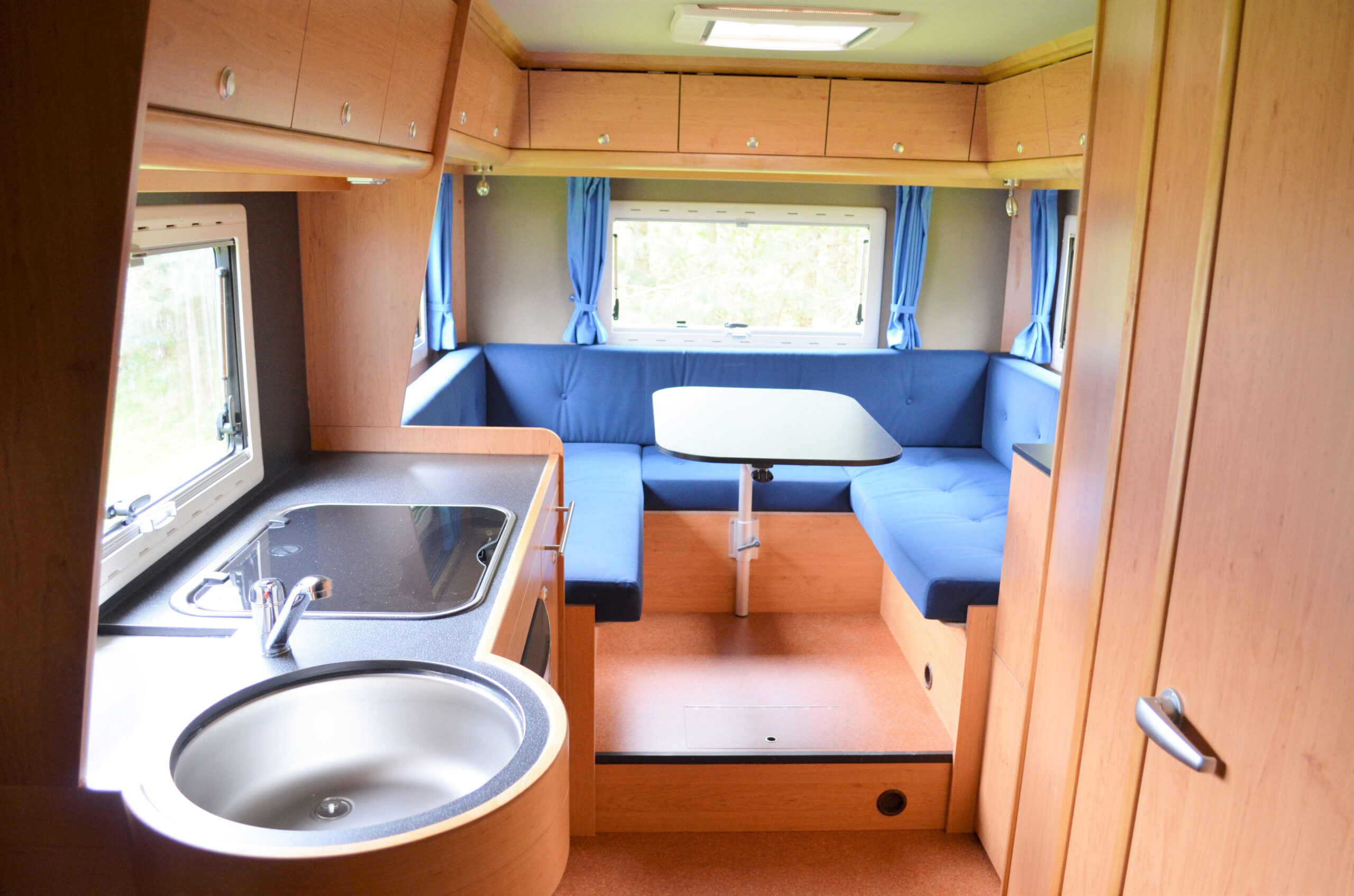 De alkoofcamper kenmerkt zich door de rondzit achterin. Naar wens is die voor de nacht om te toveren tot een bed van 2,00 x 1,65 meter. Dankzij de ramen rondom komt er veel licht binnen. Deze ramen kunnen open zijn voorzien van jaloezieën. ’s Avonds zorgen leeslampjes voor extra sfeer.