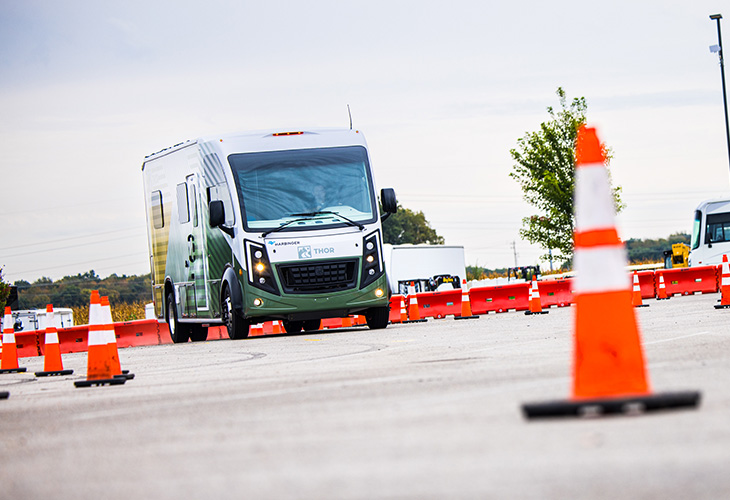 Volgens Thor en Harbinger is de hybride integraalcamper een prettig voertuig om mee te reizen vanwege de goede acceleratie en een dito koppel, wat betekent dat de Thor Test Vehicle ook in bergachtig gebied zijn mannetje staat. Daarnaast is de camper uitgerust met allerlei assist-systemen.