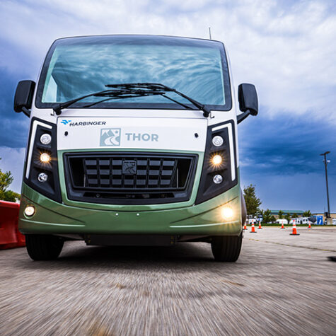 Het Amerikaanse Thor Industries is gepokt en gemazeld in deze branche. Het bedrijf geldt als de grootste fabrikant van vrijetijdsvoertuigen in Amerika én is sinds 2019 eigenaar van de Erwin Hymer Group. Om de elektrificatie van kampeerauto’s op gang te brengen, ontwikkelde de voertuigfabrikant de Thor Test Vehicle. Dit – nu nog – demonstratiemodel is een samenwerking met Harbinger Motors, een bedrijf dat zich richt op de ontwikkeling van elektrische voertuigen en technologieën voor de transportsector.