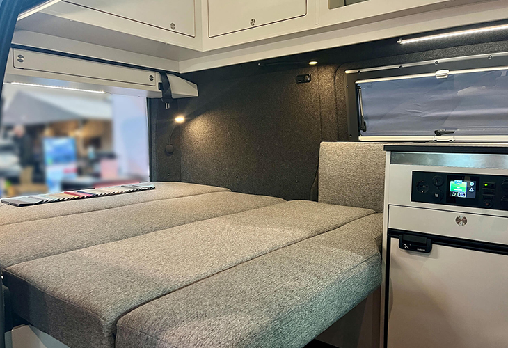 Van de bank is binnen een paar seconden een bed te maken. Met een afmeting van 2,03/1,95 meter x 1,65 meter is dit groot genoeg voor twee personen.