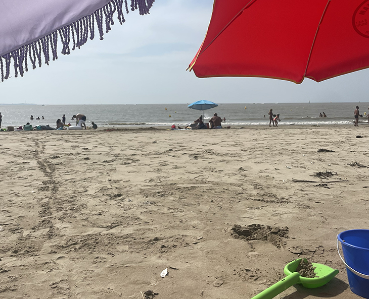 Maar who needs een vol zwembad als het strand om de hoek ligt? Op enkele honderden meters lopen ligt een heerlijk strand. Hier hebben we dagelijks gelegen en gezwommen. Het strandpubliek was relaxed en de zee fijn. We hebben hier echt heerlijke momenten beleefd. Meestal kochten we in de campingwinkel koude drankjes en iets lekkers en lagen we een paar uurtjes op het strand. Wel is het hier sterk eb en vloed, dus op sommige dagen bleven we onze strandlakens verplaatsen om maar geen natte voeten te krijgen.