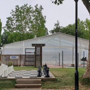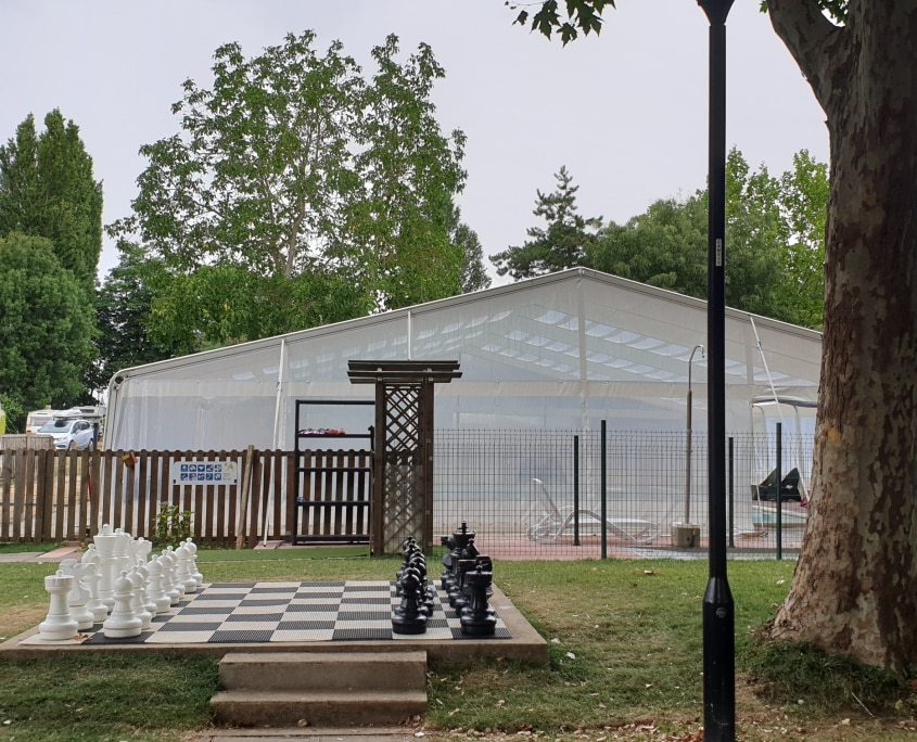 Camping La Belle Étoile ligt aan de oevers van de Seine. De ontvangst bij de receptie was correct, maar niet meer dan dat. We kregen een plekje toegewezen aan de rand van het speelveld. Ideaal voor de kids. Terwijl wij de caravan op zijn plek zetten, konden zij zich uitleven op het springkussen. Lekker even bewegen na een lange autorit. Al snel kwamen ze terug om hun zwemkleding aan te trekken. La Belle Étoile heeft namelijk een zwembad. Verwacht er alleen niet teveel van, want het is klein en rechttoe rechtaan. Overigens wel met een overkapping, dus ook bij minder weer kun je plonsen.