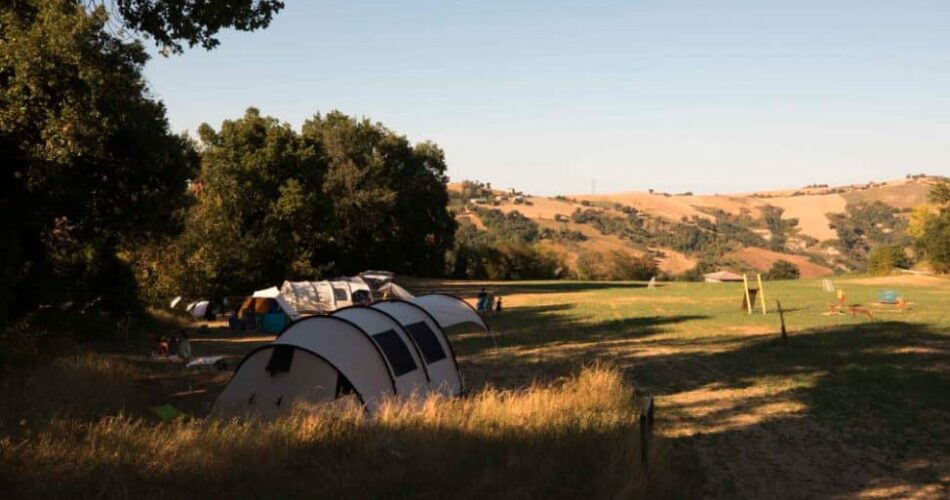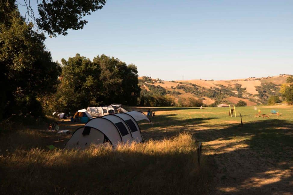 Italië: geen idee of we er deze zomer al naartoe kunnen. Maar mocht het na een reservering op de Italiaanse camping Le Marche alsnog fout gaan door een negatief reisadvies, dan krijg je gegarandeerd je geld terug. Le Marche ligt op een uurtje rijden van de Adriatische Zee. Je zit er midden tussen de heuvels. En dus heb je aan deze stille landweg een schitterend uitzicht. In de omgeving liggen de nodige historische stadjes. De acht tot tien beschikbare plekken zijn ruim opgezet en hebben een stroomaansluiting – van 3 ampère – en water. In het sanitairgebouw – vijf douches en vijf toiletten – kun je ook terecht voor de afwas en er staat een wasmachine.