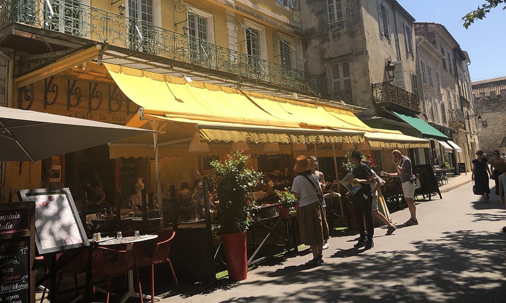 In Arles lunchen we bij Café la Nuit, beroemd door Van Gogh. Leuk om eens in het echt te zien, maar de lunch is bij deze toeristische trekpleister (zoals we eigenlijk ook wel verwachten) niet om over naar huis te schrijven.