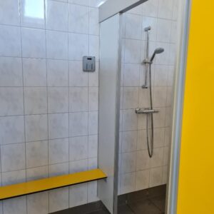 En dan heb ik het over het sanitair van Camping De Mussenkamp. De toiletten en de douches waren werkelijk spik en span. Zo fijn! Het sanitairgebouw is ruim opgezet en ook de douches hebben een flink formaat. Je kunt makkelijk met z’n tweeën in een hokje (handig als je met je kind doucht), er zijn voldoende haakjes om je kleding en handdoek op te hangen en een tussenscherm voorkomt dat alles nat wordt. Voor warm water moet je een douchekaart aanschaffen. Dit leek me behoorlijk onhandig, maar het bleek een kwestie van wennen. Op onze kaart stond drie euro, dat was ruim voldoende voor een weekend met vier personen.