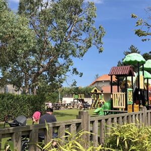 - De speeltuin is groot, met tafeltennistafels (elke avond speelden we een paar potjes) en een voetbalkooi.