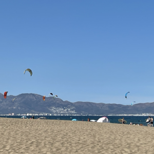 Vanwege eerdere vakanties op camping l’Amfora kenden wij het strand van Sant Pere Pescador, zo’n twintig minuten rijden vanaf de camping. We hebben in Europa weinig stranden gevonden die voor ons kunnen tippen aan dit diepe brede strand, waar je uitzicht hebt op kitesurfers en het stadje Rosas. Daarom zijn we er ook deze vakantie twee keer geweest.