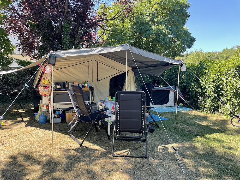 Veel hoger hoeft de prijs van camping La Citadelle in Loches van mij ook niet te zijn. Het is een camping zonder veel toeters en bellen. Er is een zwembad met een recreatiebad (+ peutergedeelte), een ‘baantjesbad’ met overkapping en een glijbaan met opvangbad. Daar omheen staan ligstoelen. Soms was het even zoeken en wachten, maar uiteindelijk vonden we altijd wel een ligstoel. Overgooien in het zwembad mag. Buiten staat een bord met een waslijst aan regels, waaronder de verplichte strakke zwembroek voor mannen en jongens, maar daar wordt niet op gehandhaafd. Er is ook geen toezicht.