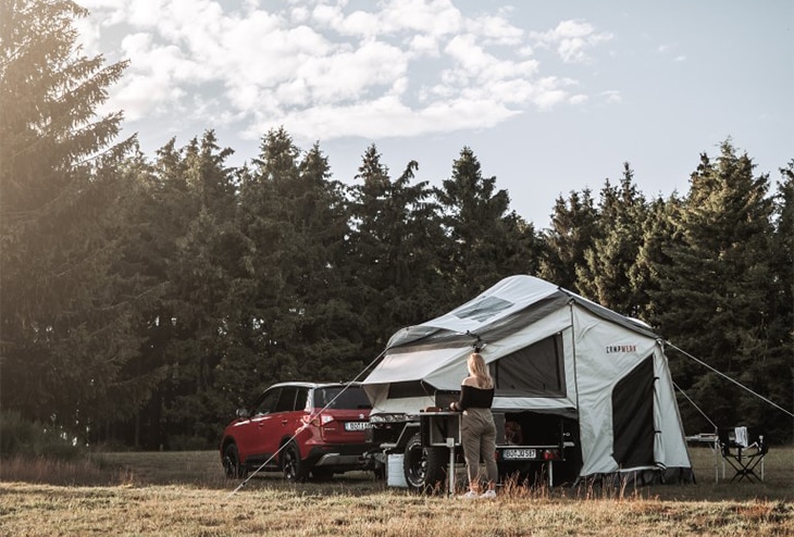 Campwerk laat alle twee de tenttrailers zien: de Economy en de Family. De Economy is de kleinste tenttrailer van Campwerk en staat heel snel. Deze tenttrailer biedt veel ruimte en een kingsize bed. De Family is een slag groter en staat eveneens snel. Door zijn grootte is de Family geschikt voor gezinnen. Beide trailers zijn met een voortent en luifel nog groter te maken. Campwerk heeft het motto ‘er zijn geen slechte wegen, alleen het verkeerde voertuig’. Daarom is de aanhanger ook in een offroad-versie beschikbaar. Deze staat ook opgesteld bij het Tent Trailer Center in Boxtel.